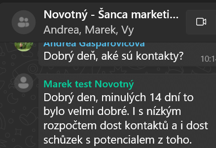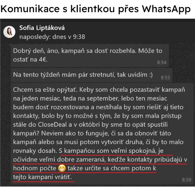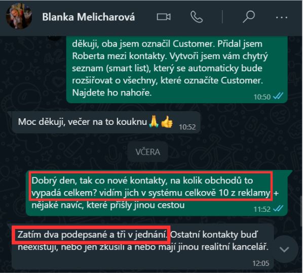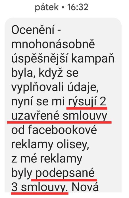 spolupracujeme 3 týdny, spustili jsme 3 kampaně, z toho mám 108 kontaktů a 2 potenciální náběry ........úplná spokojenost