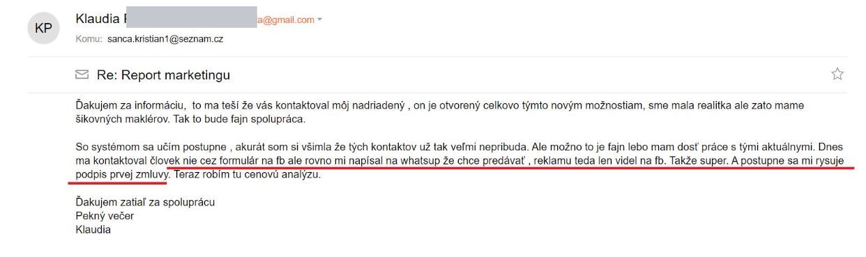 Za veľmi krátke obdobie, necelé 2 týždne som z potenciálnych klientov z reklamy získala 3 nehnuteľnosti na predaj.