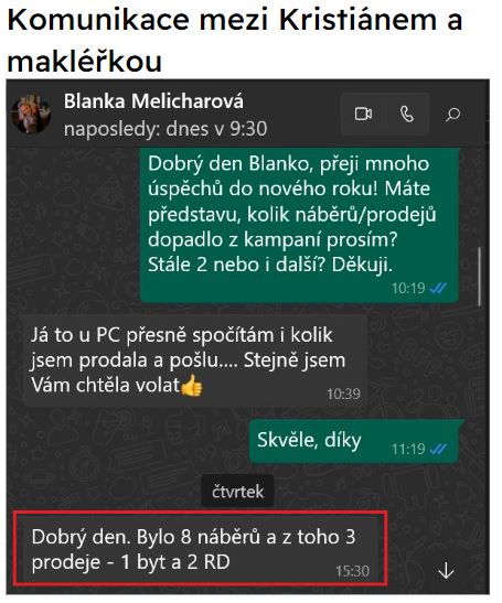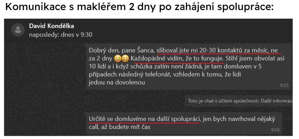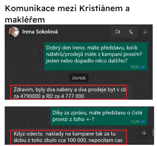 Potřebovala jsem se zviditelnit a získat klienty v začátcích své makléřské kariéry. Pan Šanca mi udělal reklamy na Facebooku na odhad nemovitosti a na můj e-book. Vytvořil mi stránku pro stažení e-booku. Napojil mi e-mailový newsletter na stránku s e-bookem a každý, kdo si e-book stáhne, obdrží několik e-mailů. Píše mi texty pro reklamy a e-maily. Jsem vytížená, mám málo času na marketing, tak jsem ráda, že se tomu nemusím věnovat a učit se všechno sama. Z reklam na odhad mám 2 nemovitosti v nabídce a 1 byla neveřejná. Teď mi pan Šanca pomáhá je prodat. Každý týden mi posílá na mail nové kontakty na kupující. Nově funguje vše automaticky přes systém CloseDeal.cz. Se studeným voláním se to nedá srovnat, přístup lidí, kteří se sami přihlásí přes reklamu je úplně jiný. Díky reklamám jsem zviditelněná a lidi mi občas posílají poptávky přímo do zpráv. Naposled mi někdo psal, jestli nemám nějaký pozemek, kde by mohli postavit kostel. Je málo dobrých markeťáků a pan Šanca dobrý je za mě. Jsem ráda, že se takto dostanu k novým prodávajícím i ke kupujícím klientům. Určitě bych službu doporučila, chodí mi kontakty a jsem viditelnější. Napište mu.