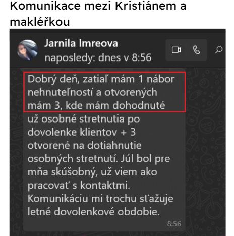 Mám pozitívne skúsenosti s Kristiánovou prácou , vyskúšala som 7-dňové skúšobné obdobie, a už sú z toho 2 stretnutia, plus ďalší v riešení a 1 potenciálny kolega. Kontakty sú to kvalitné, ľudia ktorí riešia realitnú otázku a my ako makléri im v tom môžme pomôcť. Studené volania mi už toľko nefungovali, preto som skúsila niečo iné, a už teraz vidím že sa to oplatilo. Určite odporúčam všetkým začínajúcim ale aj fungujúcim maklérom.